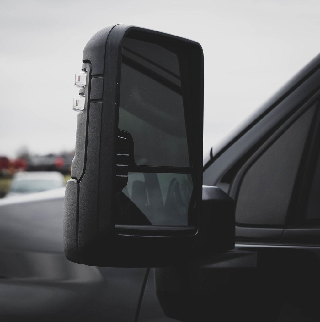 - Mirrors, outside power-adjustable vertical trailering with heated upper glass, lower convex mirrors, integrated turn signals, manual folding/extending (extends 3.31" [84.25mm])